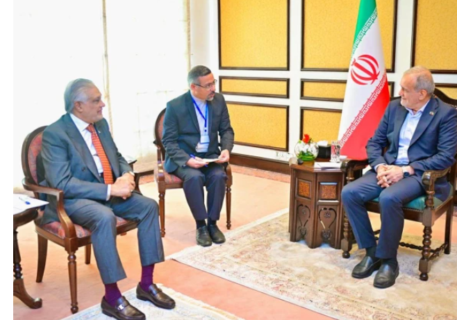 اسلام آباد:نائب وزیر اعظم اور وزیر خارجہ، سینیٹر محمد اسحاق ڈار نے اسلام آباد میں جمہوری اسلامی ایران کے صدر ڈاکٹر مسعود پژشکیان سے ملاقات کی۔نائب وزیر اعظم نے ایرانی صدر کا خیر مقدم کرتے ہوئے ایران کے ساتھ پاکستان کے تاریخی اور برادرانہ تعلقات کے لیے گہری وابستگی کا اعادہ کیا۔اسحاق ڈار نے تعلقات کی بنیاد مشترکہ تاریخ، ثقافتی ورثے، عقیدے اور باہمی احترام پر ہونے پر زور دیا۔صدر مسعود پژشکیان نے پاکستان کی حمایت کو سراہا اور باہمی دلچسپی کے مختلف شعبوں میں دوطرفہ تعاون کو مزید فروغ دینے کے عزم کا اعادہ کیا۔انہوں نے پاکستانی قیادت کے ساتھ بامعنی بات چیت کی امید ظاہر کی تاکہ دونوں دوست ممالک کے درمیان سیاسی و اقتصادی تعلقات کو مزید مستحکم کیا جا سکے۔