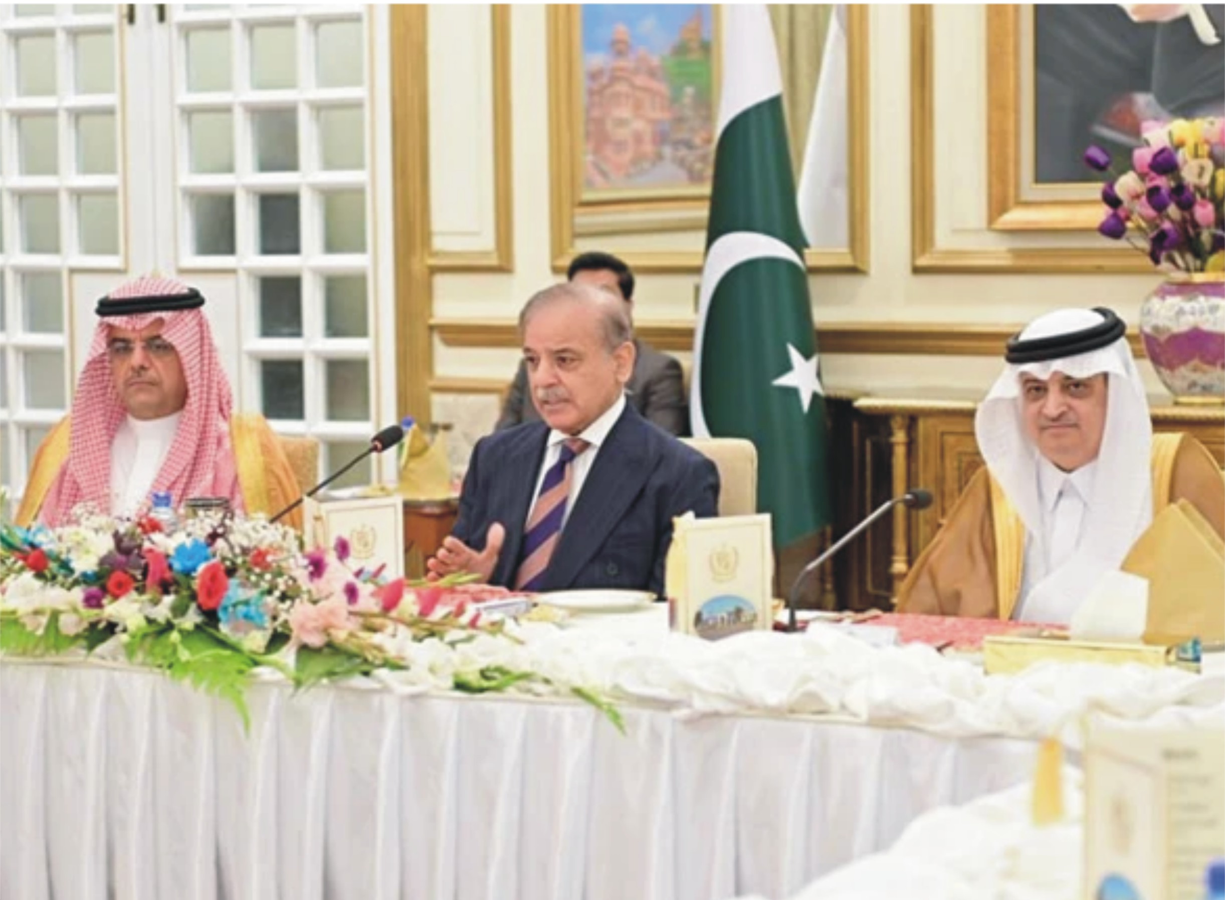 اسلام آباد:وزیراعظم شہباز شریف کا کہنا ہے کہ پاکستان مقدس مقامات مکہ مکرمہ اور مدینہ منورہ کے ہمیشہ محافظ رہے گا، ہر مسلمان ان مقدس ترین مقامات کی حفاظت کے لیے اپنی جان نچھاور کرنے کو تیار ہے۔سعودی پاکستان مشترکہ بزنس کونسل کے چیئرمین شہزادہ منصور بن محمد آل سعود کی قیادت میں آنے والے اعلیٰ سطحی سعودی تجارتی وفد کے اعزاز میں دیے گئے ظہرانے سے خطاب کرتے ہوئے کہا کہ پاکستان کو مکہ مکرمہ اور مدینہ منورہ کی حفاظت میں سعودی بھائیوں کے ساتھ شرکت پر فخر ہے۔وزیراعظم شہباز شریف نے پاکستان اور سعودی عرب کے درمیان مشترکہ کاروباری منصوبوں، تجارت و صنعت کے فروغ اور تحقیق و ترقی کے میدان میں تعاون کے لیے بھرپور عزم کا اظہار کیا ہے۔انہوں نے دونوں ممالک کی کاروباری برادریوں پر زور دیا کہ وہ باہمی اشتراک سے کاروباری مواقع سے فائدہ اٹھائیں اور مشترکہ منصوبے شروع کریں۔اس موقع پر انہوں نے پاکستان اور سعودی عرب کے درمیان طے پانے والے تاریخی اسٹریٹجک باہمی دفاعی معاہدے کا حوالہ دیتے ہوئے کہا کہ یہ بنیادی طور پر اُن برادرانہ تعلقات کی باضابطہ شکل ہے جو کئی دہائیوں سے غیر رسمی طور پر قائم تھے۔تقریب سے خطاب کرتے ہوئے سعودی پاکستان مشترکہ بزنس کونسل کے چیئرمین شہزادہ منصور بن محمد آل سعود نے پاکستان میں سازگار کاروباری ماحول کو سراہا۔انہوں نے کہا کہ دونوں ممالک کے درمیان زراعت، ڈیری فارمنگ، گوشت کی پراسیسنگ، فوڈ سیکیورٹی، دوا سازی اور تعمیرات سمیت مختلف شعبوں میں باہمی تعاون کی بڑی گنجائش موجود ہے۔